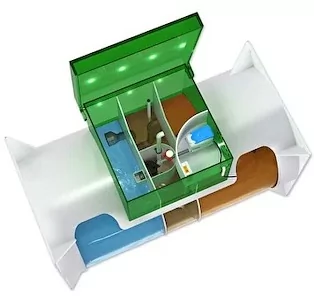 Очистное сооружение состоит из нескольких камер, где происходит фильтрация и разложение отходов. Процесс начинается в приемной камере, куда поступают сточные воды. Здесь отделяются крупные частицы и оседают твердые вещества. После этого вода поступает во вторую камеру – место биологической очистки. В ней под действием аэробных микроорганизмов происходит дополнительное разложение загрязнений.
